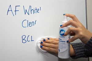 • AF Whiteboard-Clene. Effektivt for daglig/jevnlig fjerning av blekkrester på laminerte og emaljerte overflater. For å oppnå best mulig resultat, anbefales det å bruke produktet sammen med en AF rengjøringsklut. Inneholder: 250 ml.