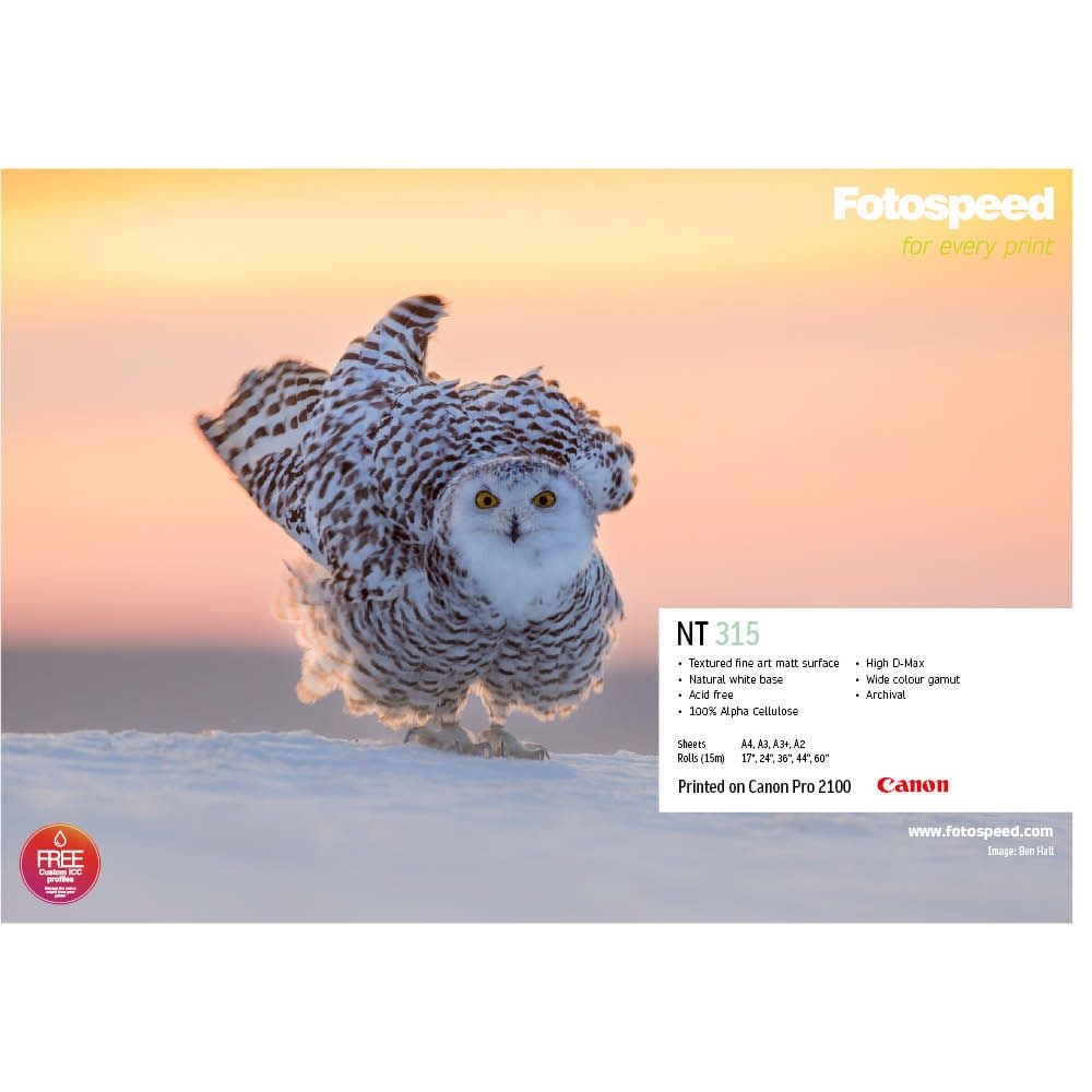 • Fotospeed Natural Textured 315 er et 100 % syrefritt Fine art-papir med kraftig struktur.