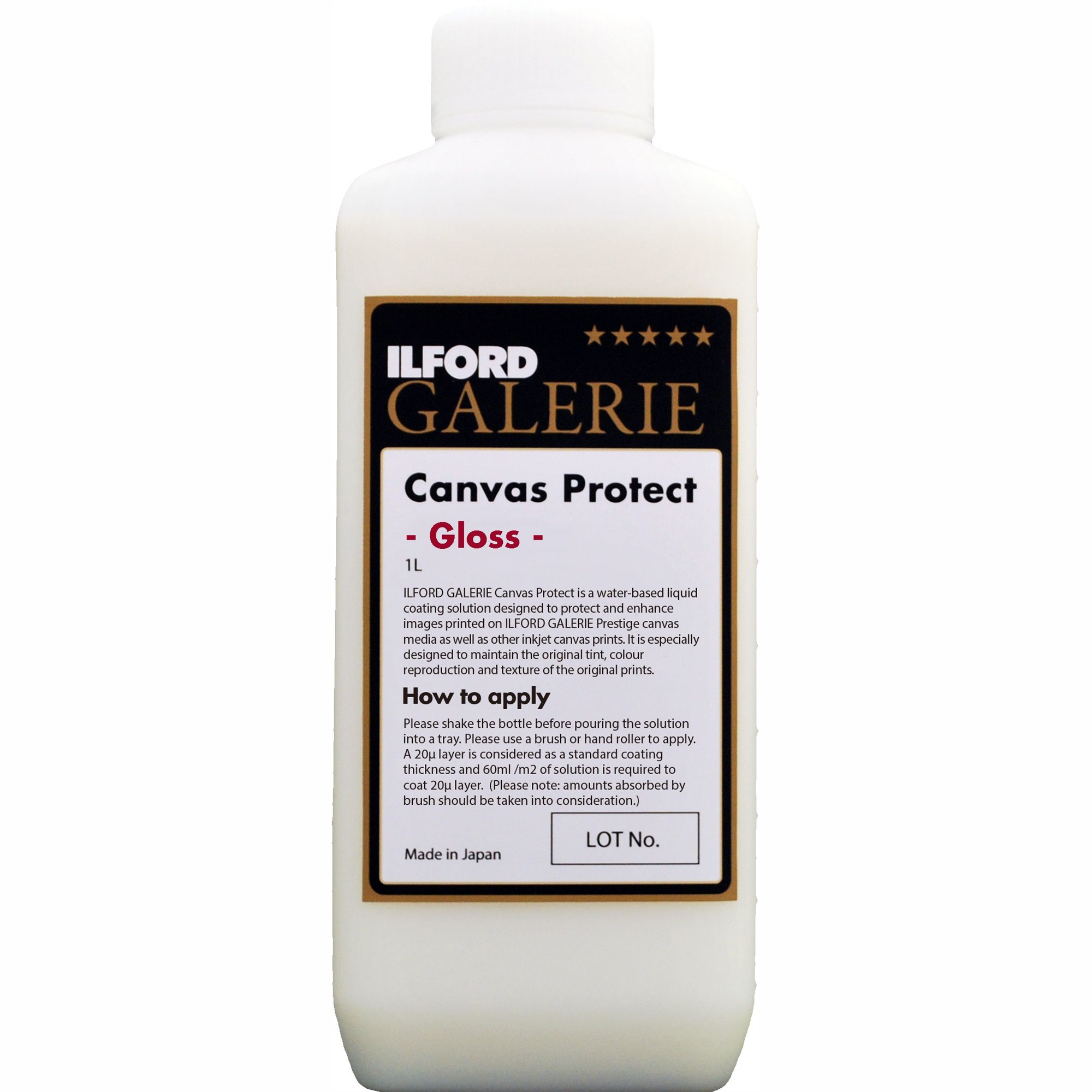 • Ilford Galerie Canvas Protect er et vannbasert flytende belegg designet for å beskytte og forbedre bilder skrevet ut på Ilford