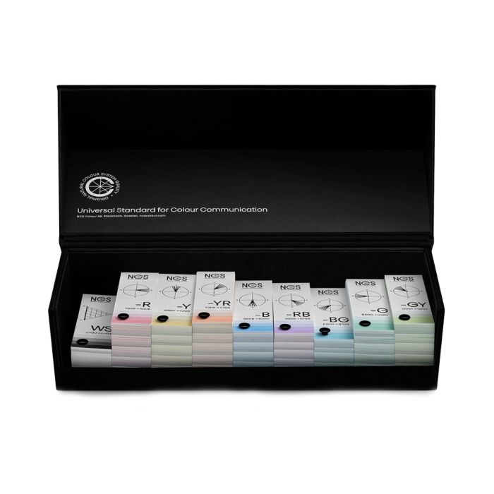 The NCS Block set is arranged by nuance, has one block for colours with 10% blackness, one for 20% blackness and in ongoing increments.